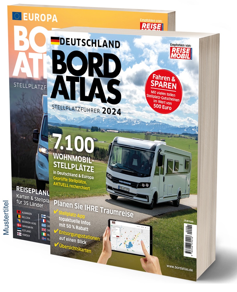 Bereits seit über 26 Jahren wird der Bordatlas von der Fachzeitschrift „Reisemobil International“ jedes Jahr überarbeitet und neu aufgelegt. Ob als Hidden Place naturnah gelegen oder zentral in Städten, mit viel Komfort oder schlicht für die Durchreise, ob für Wellness an Thermen oder sportlich in den Bergen: Die BORDATLAS Redaktion hat über 7.100 Stellplätze in Deutschland und Europa zusammengesucht – Plätze so vielfältig wie auch die Womo-Urlauber selbst. So findet jeder seinen Lieblingsplatz.