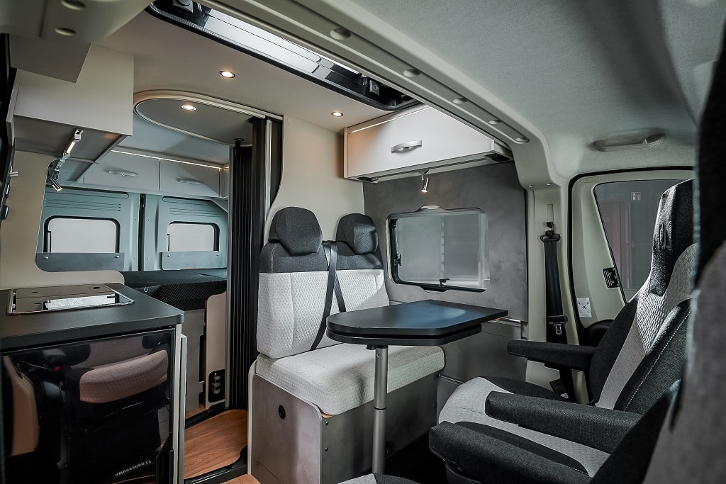 Nach einem Tag voller Adrenalin, Schweiß und Abenteuer, lädst du hier deine Energie wieder auf. Komfortables Doppelbett im Heck, großer 84 l Kompressor-Kühlschrank, fest verbauter Küchenblock mit Spülbecken und Zweiflammen-Gaskocher, Sitzgruppe für vier, plus Raumbad und das auf einer Länge von 5,40 m. Der neue CROSSCAMP 540, ein alltagstauglicher Camper Van für alle, die weder bei Komfort noch bei Abenteuern Abstriche machen wollen.