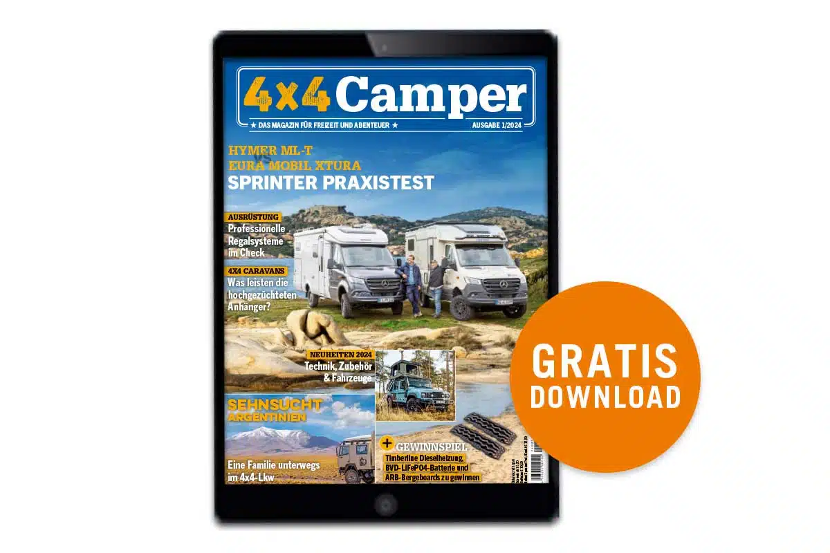 … mit der brandneuen Ausgabe 4×4 Camper: 108 Seiten voller Tests, Neuheiten & Zubehör für Ihr Offroad-Abenteuer! Plus: Praxistests, Vergleiche, Reiseberichte & Tipps.