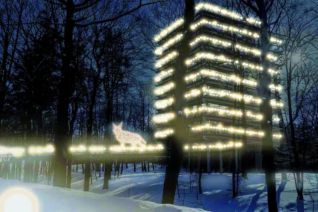 Der Baumwipfelpfad Usedom wartet noch bis zum 2. März 2025 mit einem Highlight im wahrsten Sinne des Wortes auf: Unter dem Motto Lichterzauber lassen Hunderttausende LED-Lämpchen den Pfad und Aussichtsturm im sanften Licht erstrahlen. Jeweils donnerstags bis montags und ab Februar donnerstags bis sonntags ist der Lichterzauber ab Einbruch der Dämmerung zu erleben.