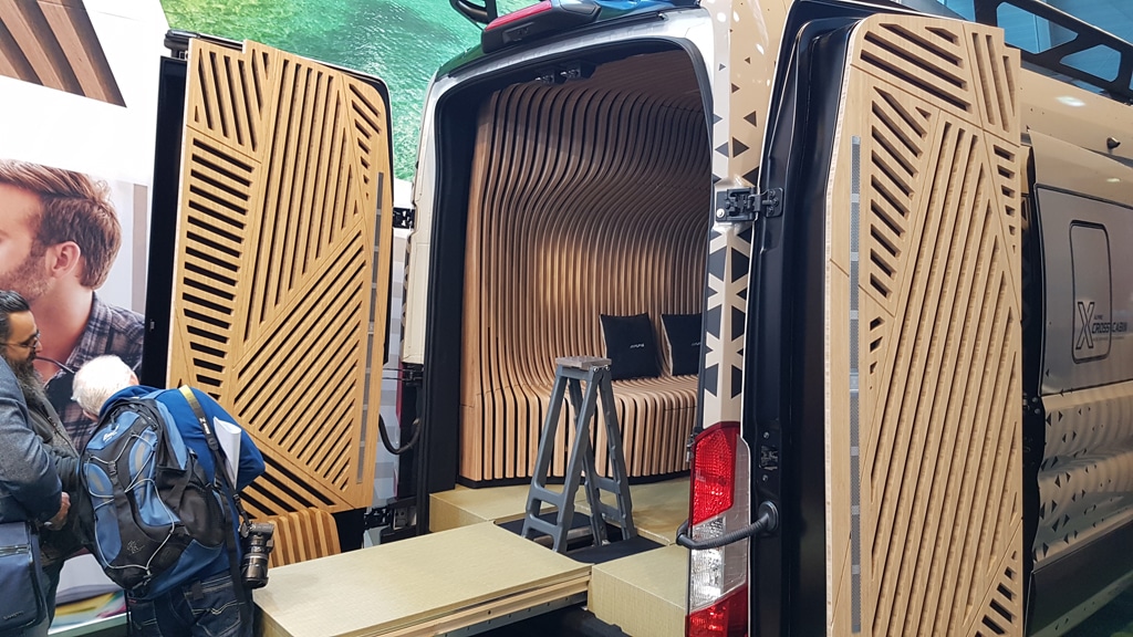 Alpine, der Hersteller von Navigations- und Soundsystemen für Reisemobile und Campervans, demonstrierte auf der Messe in Stuttgart anhand seine Konzeptfahrzeugs Alpine Cross Cabin Concept Van seine Ideen und Raumkonzepte, um diesen Anforderungen gerecht zu werden. Als Fahrzeugbasis dient ein 6,70 Meter langer Ford Transit.
