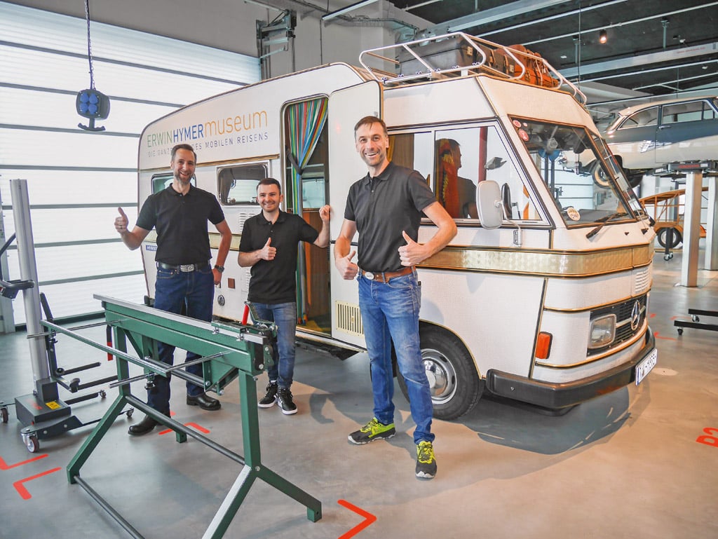 Markus Böhm komplettiert als Sammlungsleiter das Team der drei Oldtimerfans und -besitzer. Senior und lebendes Archiv für Museum und Werkstatt ist Max Ludy. Mehr als 40 Jahre lang hat der Weggefährte von Erwin Hymer in der Produktion gearbeitet, kennt als Zeitzeuge sämtliche Schrauben und Winkel der Fahrzeuge. Sein Wissen kommt immer dann zum Einsatz, wenn die jüngeren Mitarbeiter an ihre Grenzen stoßen und zum Beispiel Ersatzteile aus dem schier unerschöpflichen Fundus des Museums nicht so recht einzuordnen wissen. Schließlich sind außer Kenntnissen aus Fahrzeugbau und Technik, Elektrik und Materialkunde vor allem Geschick sowie Freude am Recherchieren und Tüfteln gefordert.
