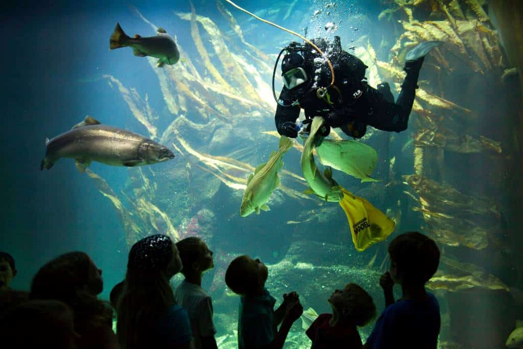 Im Nationalpark-Zentrum Multimar Wattforum in Tönning erleben Besucher die Nordsee hautnah. Allein das Großbecken mit 250.000 Litern Wasser bildet – neben mehr als 30 Aquarien – einen Höhepunkt. Beim Blick durch die große Panoramascheibe des Nationalpark-Zentrum Multimar Wattforum in Tönning entsteht der Eindruck, selbst auf Tauchstation zu sein und tiefe Einblicke in die Unterwasserwelt zu gewinnen. Das aber trockenen Fußes. Zusätzlich zu den Aquarien lässt sich hier das Wattenmeer auf mehr als 4.000 Quadratmetern entdecken. Von kleinen Wundern und großen Phänomenen, von Fischen bis zu den Fischottern – hier sind Ausflüge in die Salz- und Süßwasserwelten einer weltweit einzigartigen Region möglich: dem Weltnaturerbe Wattenmeer. Online-Tickets kosten für Erwachsene 15 Euro.