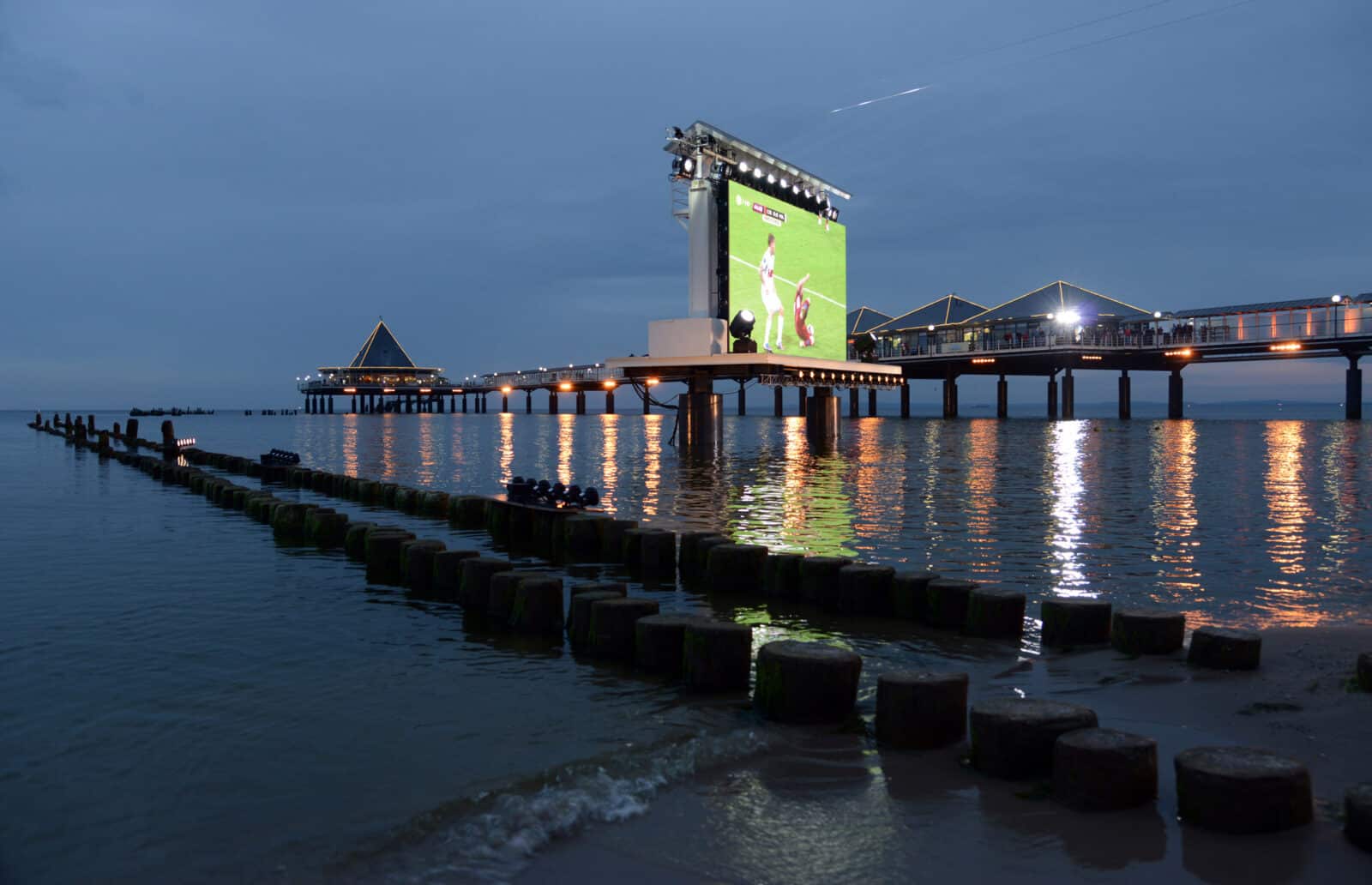 Auf Usedom wird der Strand im Ostseebad Heringsdorf eine große Open-Air-Fußball-Tribüne. Beim Public Viewing können Fußballfans die Spiele auf einer 32 qm großen LED Videowand in der Ostsee verfolgen. In den Strandkörben oder eingekuschelt in warme Decken wird das Publikum die Fußball-EM 2024 unter freiem Ostseehimmel erleben.