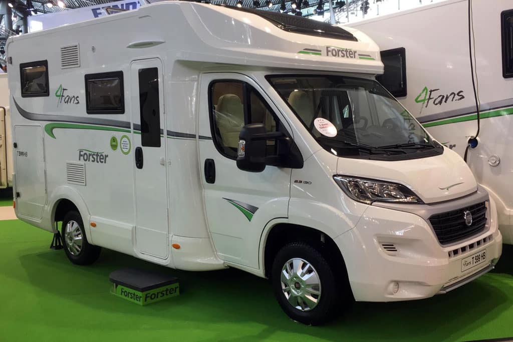 Forster baut seine Modellpalette aus. Neu im Programm der zu Eura Mobil gehörenden Marke ist die preislich interessante Baureihe 4Fans. Der 5,99 Meter kurze T 599 HB ergänzt die Serie um eine Variante mit erhöht montierten Heckbett und darunter montierter Garage. Dazu gesellen sich im mittleren Wagenteil ein Bad und Längsküche. Vorne steht eine komfortable Sitzgruppe. Der holzfreie Aufbau besteht vollständig aus einem GFK-Sandwich.
