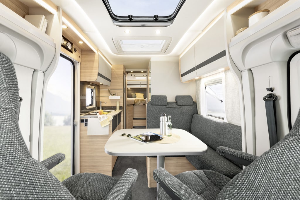 Optional hält ein aufwendiges Lichtkonzept, Light Moments genannt, Einzug. An der Küche schafft der Hersteller durch eine neue Positionierung von Kocher und Waschbecken mehr Arbeitsfläche. Die Heckgarage wird mit einer Anti-Rutsch-Oberfläche und neuen Verschlüssen aufgewertet.