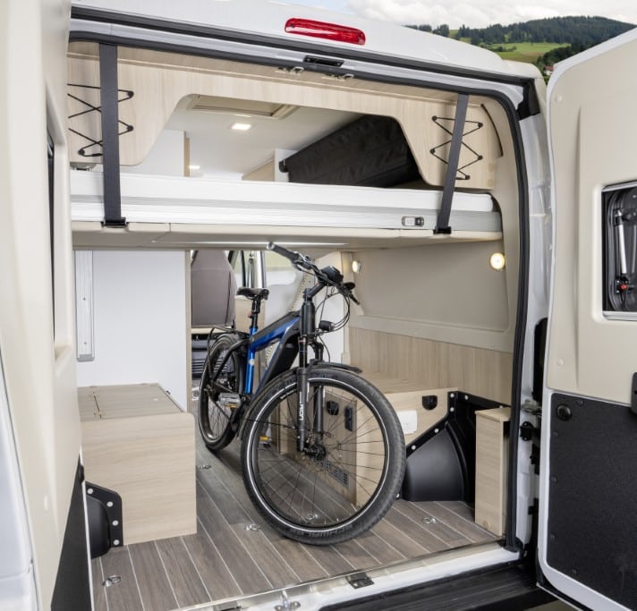 Das elektrische Hubbett gehört zur Serienausstattung. Es ermöglicht den Transport sperriger Sportausrüstung.