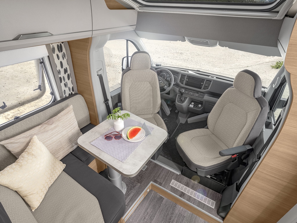 Bislang finden sich im Knaus-Modellprogramm zwei schmale Teilintegrierten-Baureihen: der Van Ti auf Fiat Ducato und der Van Ti Plus auf MAN TGE. Die Fiat-Variante gibt es seit Kurzem auch als Vansation getauftes Editionsmodell mit Vollausstattung. Beide – Van Ti Plus auf MAN und Van Ti Vansation auf Fiat – verkaufen sich laut Hersteller bestens.