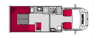 Zwei weitere Camper schlafen darüber im elektrisch stufenlos verstellbaren Hubbett.
