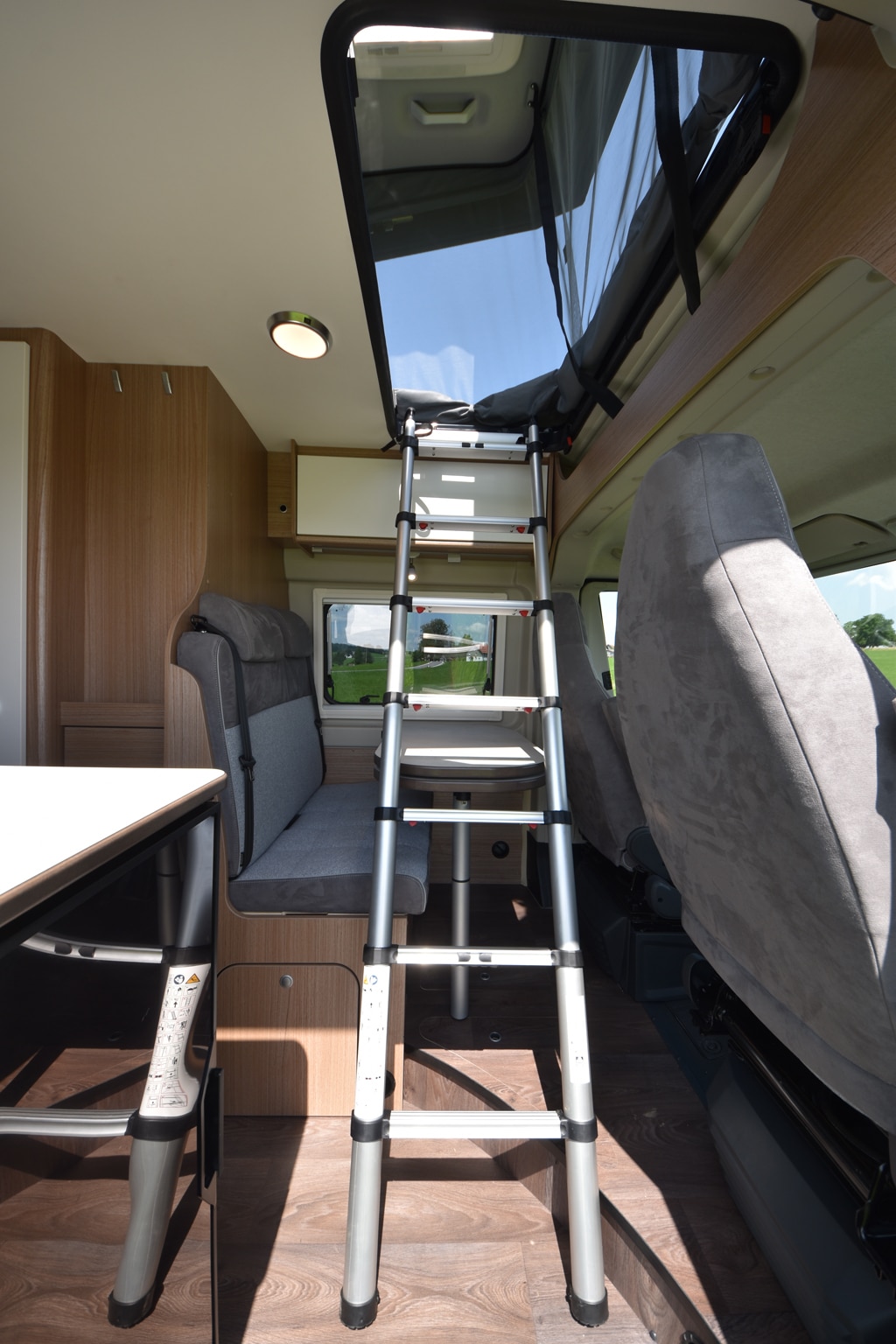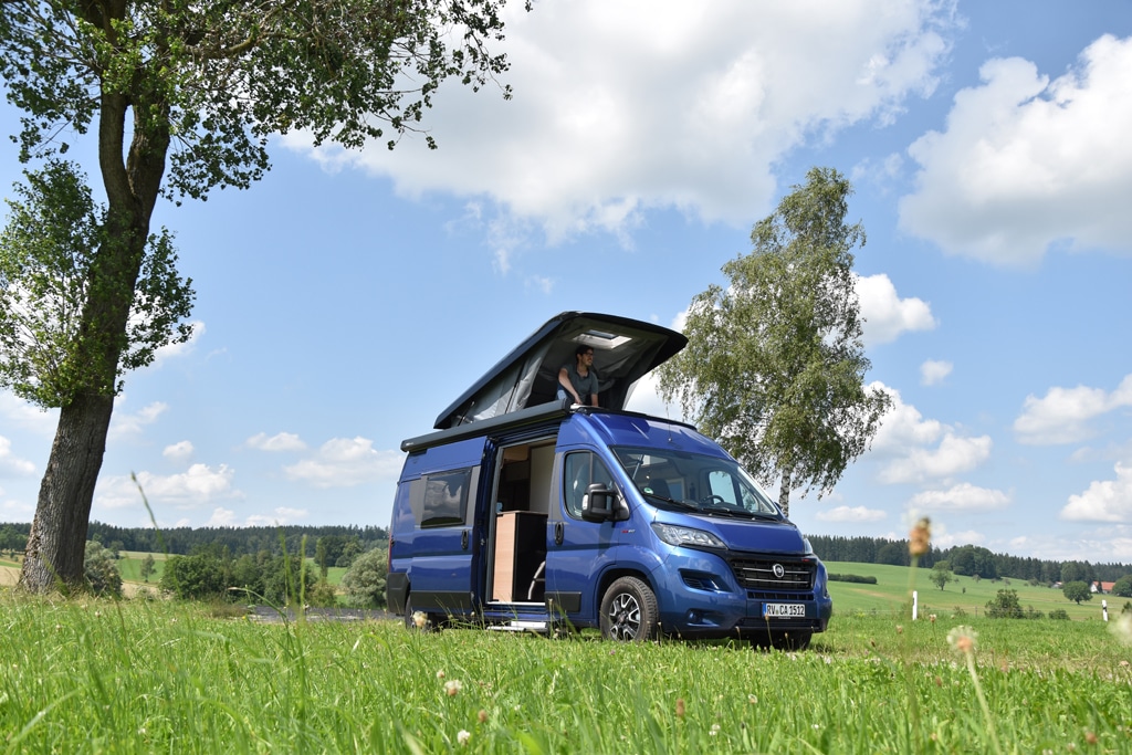 Die Kastenwagen kommen als Edition15 stets mit Aufstelldach, das Carado ab der Saison 2022 für alle Kastenwagenmodelle auf Fiat Ducato anbietet. Highlights: Die Matratze des Dachbettes liegt auf einem Holzlattenrost, der Zeltstoff lässt sich dank Panoramafunktion komplett öffnen. Das Aufstelldach wird schwarz lackiert. Die Carado-Integrierten rollen künftig mit neugestalteter Front samt LED-Scheinwerfern und Chrom-Kühlergrill sowie angepasstem Armaturenbrett vor.