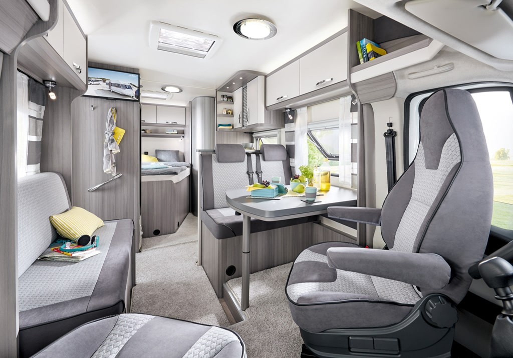 Die gleiche Basis nutzen auch die Teilintegrierten der Serie Hobby Optima Ontour. Zur Saison 2021 nimmt Hobby zwei neue Grundrisse mit Heckbad ins Programm. Der T 70 E verfügt vor dem Waschraum über Einzelbetten, der T 70 F ist mit einem seitlichen Doppelbett ausgestattet. Der Boden der Modelle der Serie Hobby Optima Ontour wird aus robustem GfK gefertigt und mit wasserabweisendem XPS-Schaum isoliert. Für die Wände wird EPS verwendet.