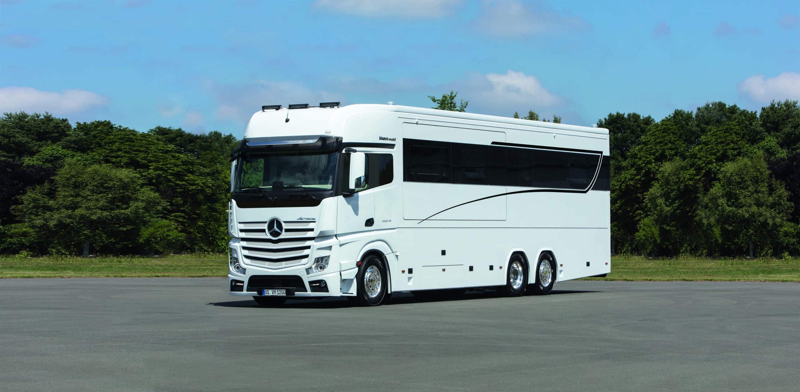 Das sind die Eckdaten des neuen Vario Signature 1200: 530 PS, 26 Tonnen, zwölf Meter Länge, drei Achsen, Slide-out, Pkw-Garage.