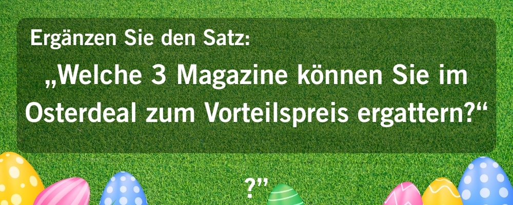 Sie möchten nicht abwarten, ob Sie beim Gewinnspiel zu den Glücklichen gehören – oder suchen noch ein besonderes Geschenk für Ihre Liebsten zu Ostern? Dann ist unser exklusiver Osterei-Deal genau das Richtige für Sie! Sichern Sie sich jetzt 1 Jahr lang unser Kombi-Abo – Print und Digital – und sparen Sie dabei 20 €!