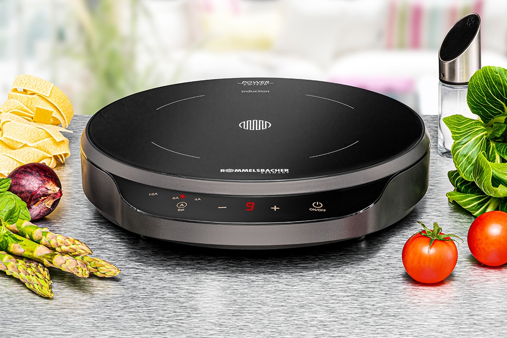 Nie war mobiles Kochen flexibler als mit dieser innovativen Induktionskochplatte von ROMMELSBACHER. Superleicht, handlich rund, leise und zeitgemäß durch wählbare Strom-/Leistungsbegrenzung: