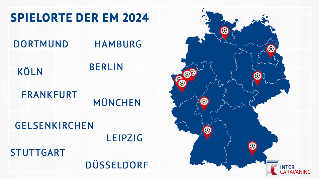 In wenigen Wochen startet die Fußball Europameisterschaft. In Deutschland rollt der Ball an zehn verschiedenen Spielorten. Wer mittendrin statt nur dabei sein will, findet hier den richtigen Stellplatz und Campingplatz.