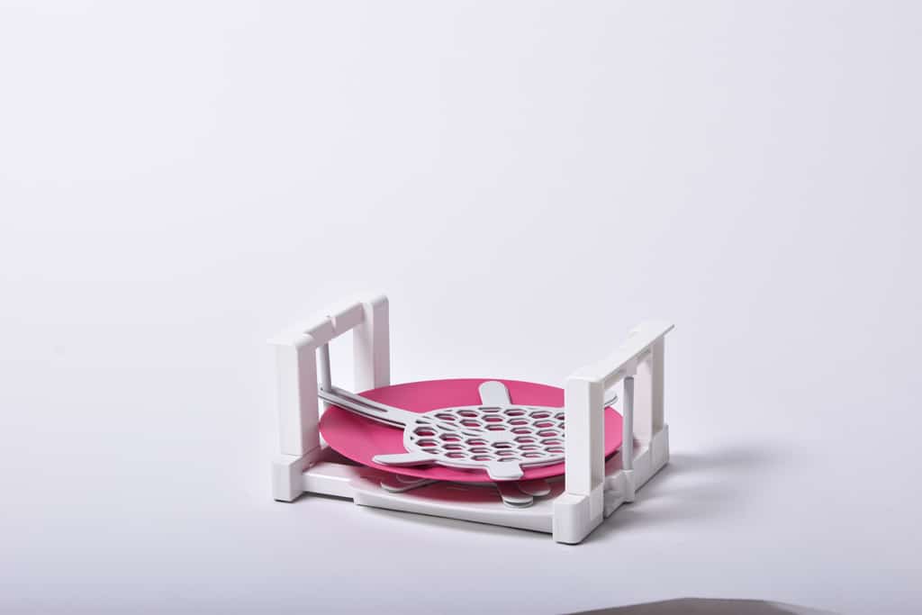 Das kann es: Klemmt beliebig viele übereinander gestapelte Teller im Schrank fest und verhindert, dass sie umherrutschen.