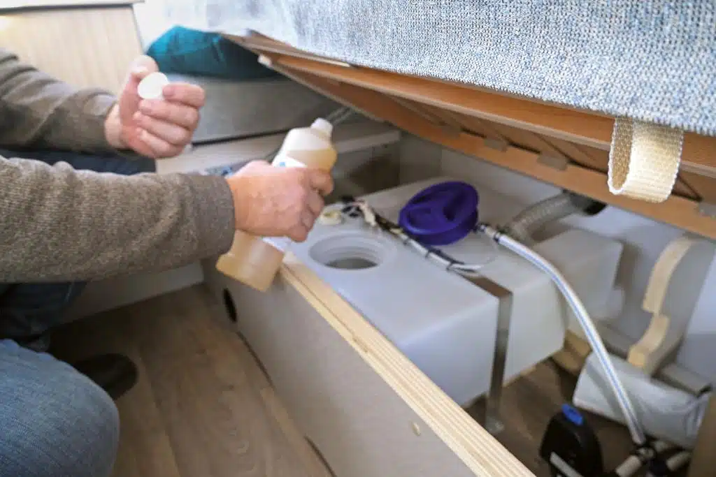 Hat das Wassersystem den Winter trocken verbracht, sollte es ordentlich durchgespült und eine Grundreinigung vorgenommen werden. Dafür gibt es Reiniger im Fachhandel, die für saubere Leitungen und Tanks sorgen. Wer die Anlage mit speziellem Frostschutz gefüllt hat, lässt diesen ab und spült das System gründlich mit Frischwasser. Beide Arbeitsgänge füllen auch Therme oder Boiler für die Warmwasserversorgung. Die sollten jetzt wie die Heizung einmal gründlich aufgeheizt werden. Dann zeigt sich, ob alles funktioniert, und vor allem riecht die Heizung nicht unangenehm, wenn sie das erste Mal wieder gebraucht wird. Außerdem lohnt ein Blick aufs Warmluftsystem. Gerne rutschen die Pappschläuche von den Winkeln oder Austrittsdüsen oder sie sind von umherrutschender Ladung gequetscht, was die Luft staut.