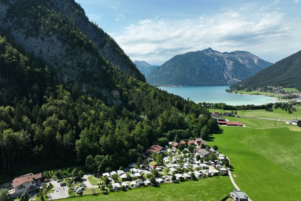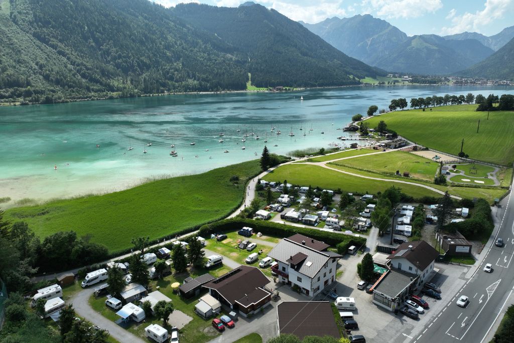 Der gemütliche und familienfreundliche Campingplatz liegt direkt am Waldrand, umgeben vom Karwendel-und Rofangebirge und in unmittelbarer Nähe zum Achensee. Die parzellierten Stellplätze sind 80-100 m2 groß, haben alle Strom- und Kabelfernsehanschluss und es steht W-LAN zur Verfügung. Das moderne Freizeit- und Badehaus auf 4-Sterne-Niveau ist mit Miet-Badezimmern, Infrarotstühlen, behindertengerechtem Badezimmer, einem Indoor-Kinderspielraum, Tischfußball, Flipper etc., einem Fitnessraum, Hundedusche und einem Skiraum mit Skischuhtrockner ausgestattet. Die Sanitäreinrichtungen sind barrierefrei zu erreichen! Darüber hinaus ist das Badehaus mit dem CamperClean-System ausgestattet! Das eigene Restaurant bietet eine gut-bürgerliche Küche und Wildgerichte aus eigener Jagd an. Neben drei Ferienwohnungen und zwei kleinen Holzhütten laden im Achenseer Hüttendörfl fünf im traditionell ländlichen Tiroler Stil erbauten Hütten zu einem Urlaub der Extraklasse ein.