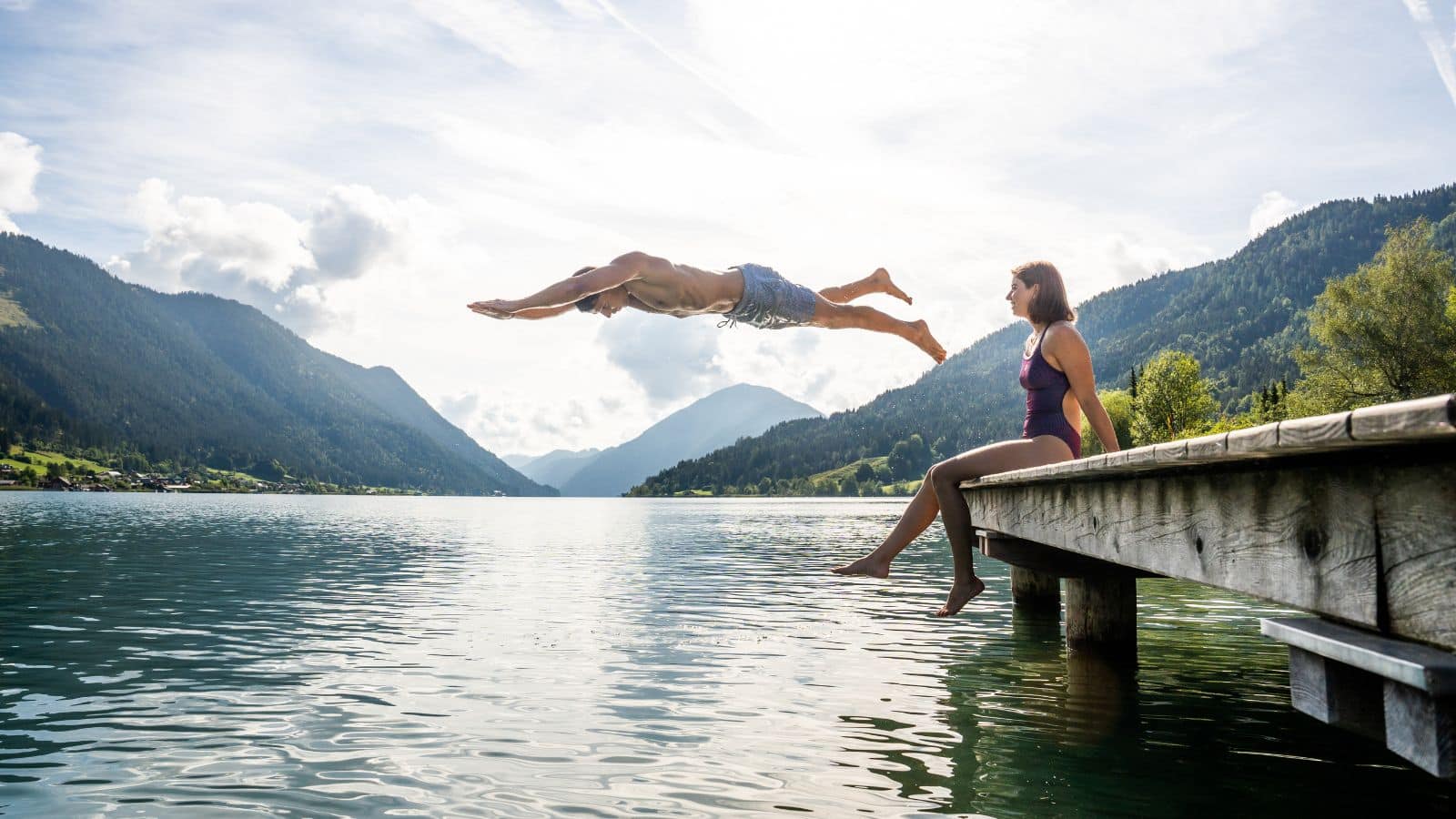 Ein familiär geführter Platz am Ufer des Weissensees, umgeben von kristallklarem Wasser und einer einzigartigen Landschaft – das ist die Kulisse, die den Campingplatz Knaller am Weissensee umgibt. Besonders schön: der Badestrand direkt am See. Hier finden Urlauberinnen und Urlauber sogar eine Tauchbasis und Ruderboote, SUP Boards, Wasserski etc.