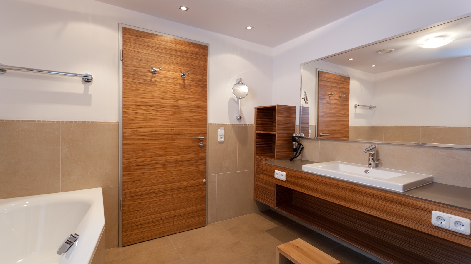 Auf den mehr als 10.000 m² fassenden Areal steht das modern Badehaus Deluxe mit 15 privaten Baderäumen für Sie bereit. Dieses verfügt über Dusche/WC und Bad/WC, einer bestens ausgestatteten Küche mit Geschirrspüler, Kühlschränken und einem gemütlichen Esstisch, sowie einem Wasch- und Trockenraum. Zudem stehen im angegliederten Haupthaus des Resorts weiter 20 private Baderäume zur Verfügung.