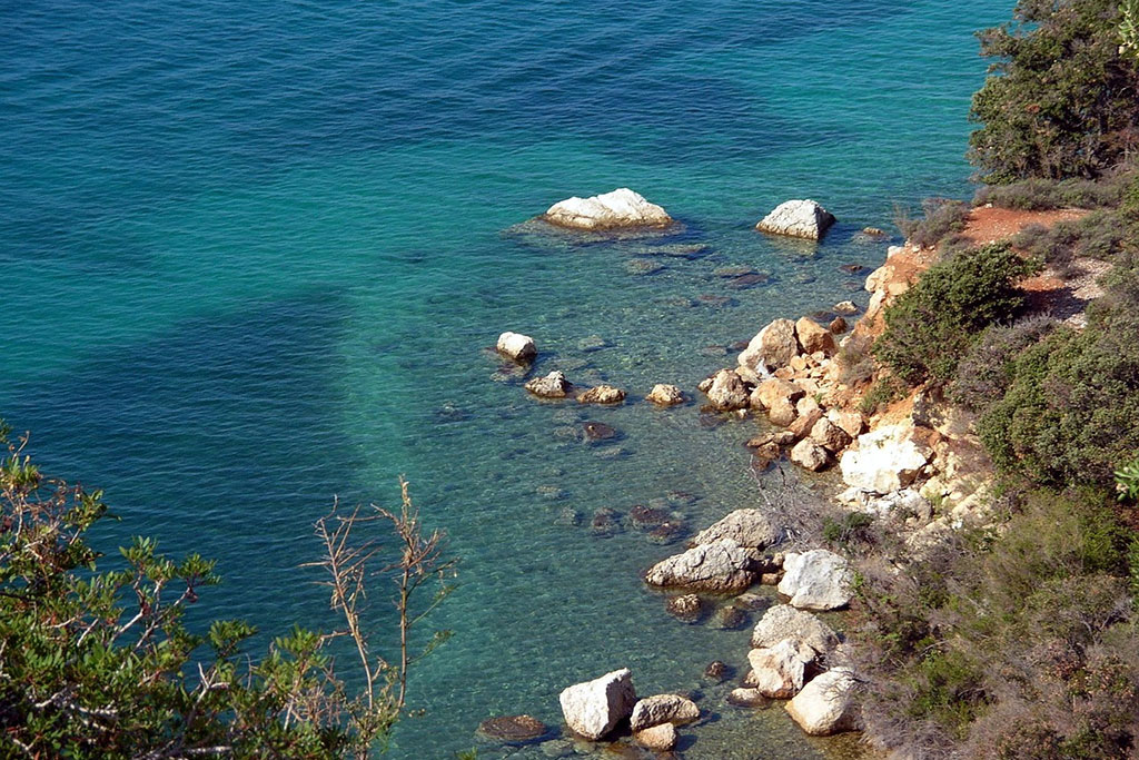 Naturbelassener Platz direkt am Meer mit terrassenartig angelegten Plätzen.