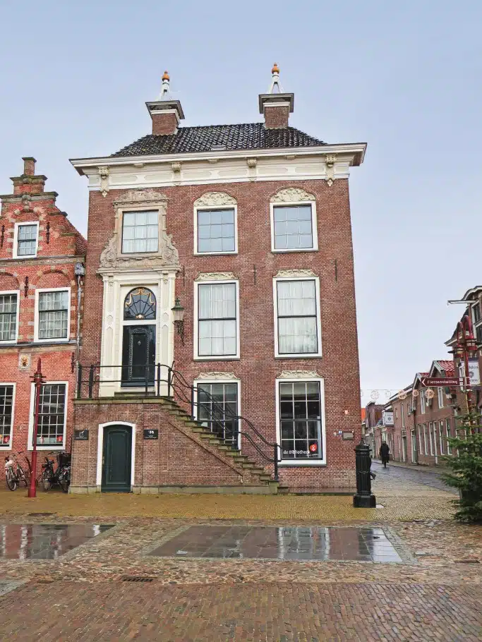 Für uns geht es weiter nach Hindeloopen, das nächste malerische Mini-Städtchen. Sehenswert sind der alte Fischereihafen mit Zugbrücke sowie der schon von Weitem erkennbare schiefe Westerturm von 1593. Außerdem gibt es ein Schlittschuh-Museum, welches wir jedoch links liegenlassen. Uns zieht es stattdessen gleich ins sieben Kilometer entfernte Workum. Dort wollen wir den mit einer goldenen Ledertapete verzierten Ratssaal im Stadhuis anschauen. Auf dem Dachboden soll sich zudem eine hölzerne Arrestzelle für Trunkenbolde befinden. Doch als wir ankommen, ist die Tür leider verschlossen. Ein Problem, mit dem Wintercamper in Friesland auch an manch anderem Ort rechnen müssen. Kein Zugang zu Sanitärgebäuden und abgesperrte Wasserhähne sind zu dieser Jahreszeit eher die Regel als die Ausnahme.