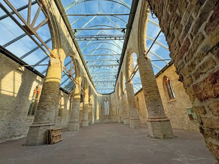 Höchste Zeit, mal wieder die Stadt zu wechseln. Wer mitgezählt hat, weiß: Es fehlen noch sieben. Jede einzelne im Detail zu beschreiben, würde den Rahmen dieses Berichtes sprengen. Ijlst ließe sich überspringen (wobei der Stellplatz an der Natureisbahn vielleicht ein Geheimtipp wäre, wenn es dort denn wirklich mal Eis gibt). Gleiches gilt für das winzige Sloten (wo es außer einer schmucken Gracht mit putzigen Wohnhäuschen aus dem 17. Jahrhundert nichts wirklich Erwähnenswertes zu sehen gibt). Keinesfalls verpassen sollte man dagegen Bolsward, dort unbedingt einen Blick in die Broerekerk werfen. Seit einem Brand im Jahr 1980 ist sie eine Ruine. 2006 jedoch entwarf Architekt Jelle de Jong ein Glasdach, das wie ein Baldachin über den Gebäuderesten zu schweben scheint. Spektakulär! Franeker wiederum empfiehlt sich mit einem Bummel durch die Gassen, vorbei am prunkvollen Rathaus aus dem 16. Jahrhundert. Wer will, kann auch ins älteste Planetarium der Welt gehen.