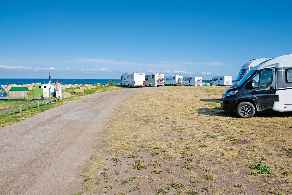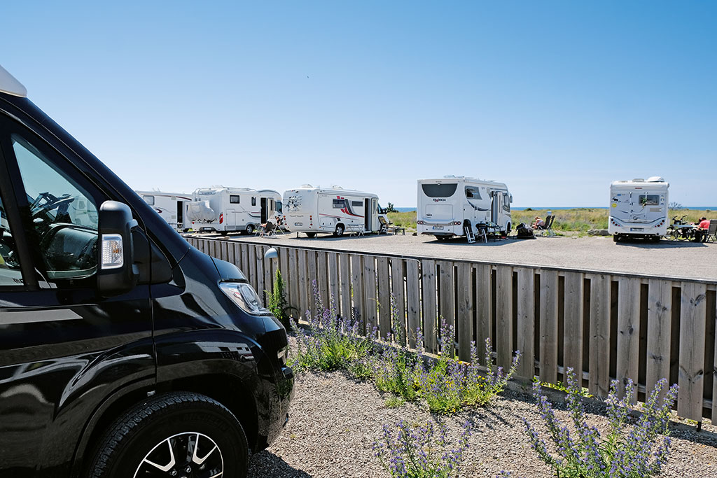 Wir starten von der Brücke aus zunächst gen Süden. Tipp: Die Landstraße 136 führt einmal fast um die Insel herum – prädestiniert für eine Inselrundfahrt. Stellplätze gibt es reichlich. Drei davon – zwei im Norden, einer im Süden – möchten wir bei Gelegenheit besonders hervorheben. Ebenfalls sinnvoll: Das Eiland auf dem Rücken eines Drahtesels zu erkunden. Allerdings sind die Entfernungen bei der Planung nicht zu unterschätzen. Die zweitgrößte schwedische Insel misst zwar an ihrer breitesten Stelle gerade einmal 16 Kilometer, ist dafür aber stolze 137 Kilometer lang – entsprechend sollten Camper Zeit mit im Gepäck haben. Kondition ist ebenfalls von Vorteil, auch weil der Wind hier viel weht.