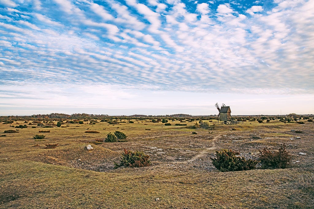 Berge und Wälder als natürliche Barriere, abgesehen von der Nordspitze, sucht der Urlauber indes vergeblich. Aber das nimmt er an einem der sonnigsten Flecken in Schweden gern in Kauf. Ständige Begleiter auf den ersten Kilometern sind alte Windmühlen, die markant aus der flachen, zur Westküste hin abfallenden Insellandschaft herausragen. Glaubt man dem örtlichen Touristenbüro, sollen es stolze 350 sein, wir haben nicht nachgezählt.