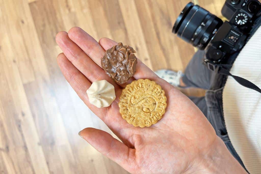 Einst dienten Kekse als Proviant auf See. Durch ein Loch in der Mitte fädelten die Matrosen die sogenannten Biscuits de mer an ihre Gürtel. Das Gebäck war jedoch steinhart und hatte wenig mit den feinen Butterplätzchen gemein, die heute zu Kaffee und Tee gereicht werden. Mit Schokolade und Keksen im Bauch geht es zurück zum Reisemobil.