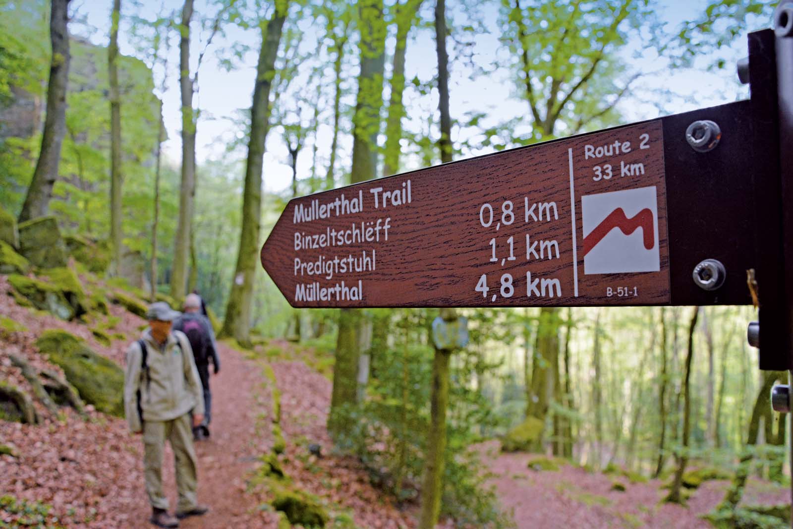 Das Wanderwegenetz im Großherzogtum, besonders aber in der auch als Müllerthal bezeichneten Kleinen Luxemburger Schweiz, ist mustergültig angelegt. Das Tourismusamt Luxembourg for Tourism hält Wege und Beschilderungen prima in Schuss. Doch mehr noch: Wer erst beim Tanken in Wasserbillig ganz plötzlich seine Leidenschaft fürs Wandern entdeckt hat, leiht sich im Tourist-Zentrum Heringer Millen im Ort Mullerthal gratis eine Ausrüstung. Die Mühle samt funktionstüchtigem Mühlrad ist mustergültig restauriert und als kleines Museum mit Verkauf regionaler Produkte eingerichtet. Nebenan lockt das sehr schön ausgestattete Restaurant und Café Heringer Millen mit so manchem Gaumenschmaus.
