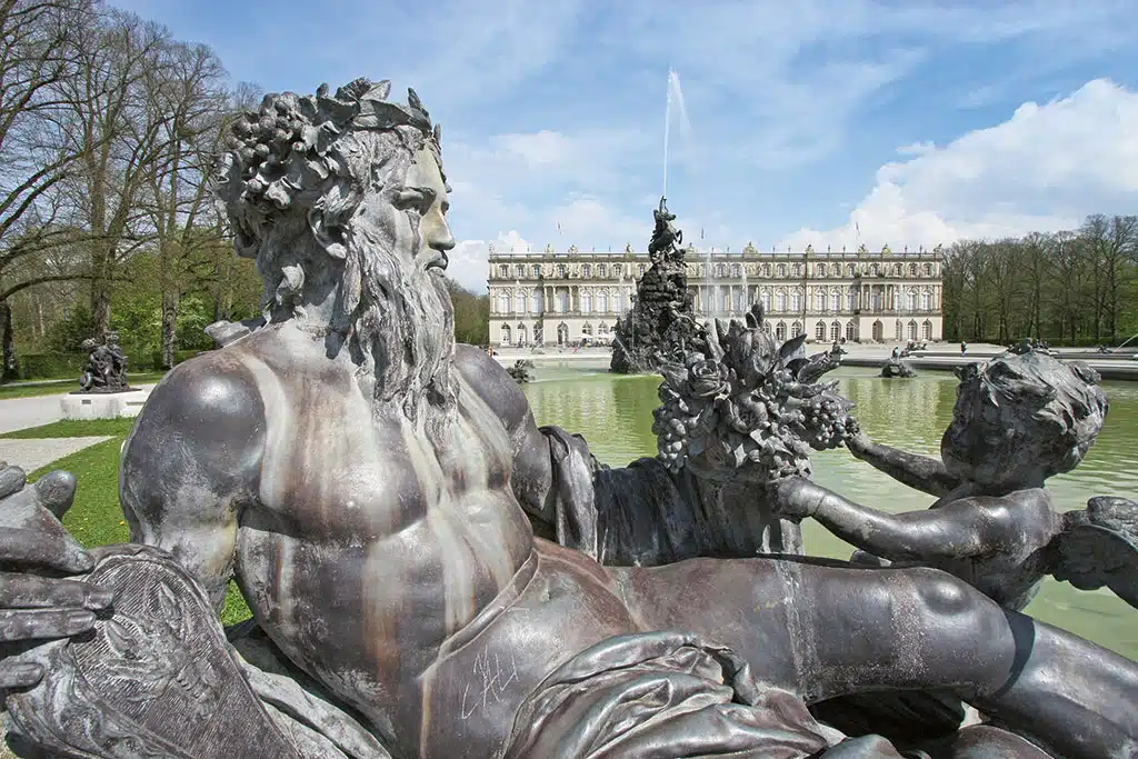 Die meisten kommen wegen der Gesamtanmutung des Schlosses, das bis zum Tod des Königs mit 16 Millionen Goldmark mehr an Baukosten verschlang als Linderhof und Neuschwanstein zusammen. Aus Gstadt kommend legt das Ausflugsschiff zunächst an der Fraueninsel, dann an der Herreninsel an. Vorbei an Blumenwiesen, blühenden Obstbäumen und durch dichten Wald lässt es sich gemütlich zur Schloss-Anlage schlendern.