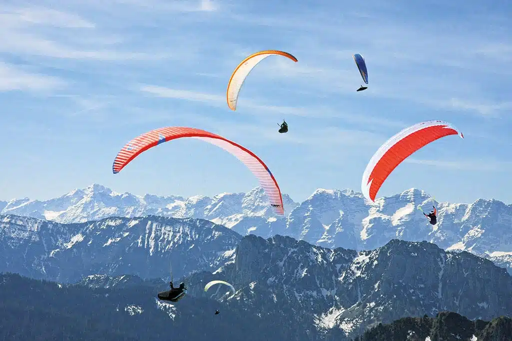 Ein weiterer sehenswerter Berg der Chiemgauer Alpen ist der 1.674 Meter hohe Hochfelln – auch „Aussichtsterrasse des Chiemgaus“ genannt. Wer nicht hochlaufen möchte, nimmt die Seilbahn ab Bergen, am besten um neun Uhr in der Früh, und schwebt gemeinsam mit schwer bepackten Gleitschirmfliegern in zehn Minuten hinauf zur Mittelstation und in fünf weiteren Minuten bis fast hinauf zum Gipfel. Oben liegt Schnee, hier und da sprießen Frühlingsenziane und aus der Ferne ertönt der schrille Pfiff eines Murmeltiers.