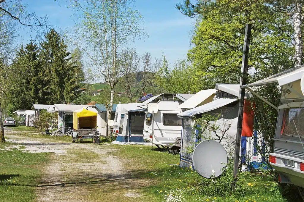 Chiemsee Camping Lambach, Lambach 3, 83358 Seebruck, Tel.: 08667/7889, mail@camping-am-chiemsee.de, www.camping-am-chiemsee.de. Direkt am Seeufer mit schönem Alpenpanorama. Ebenes Wiesengelände mit Bäumen und Sträuchern. 60 Stellplätze für Touristen, 23 für Dauercamper. Tret-, Elektroboot, SUP-Verleih. Radweg führt direkt am Platz vorbei. „Lambach Hüttn“ mit Terrasse und Gastgarten (toller Seeblick). Stellplatz für 2 Personen in der Vorsaison 25-40 Euro, zzgl. einmaliger Energiezuschlag (4 Euro) und Kurtaxe. Geöffnet: 1.4. – 3.10.