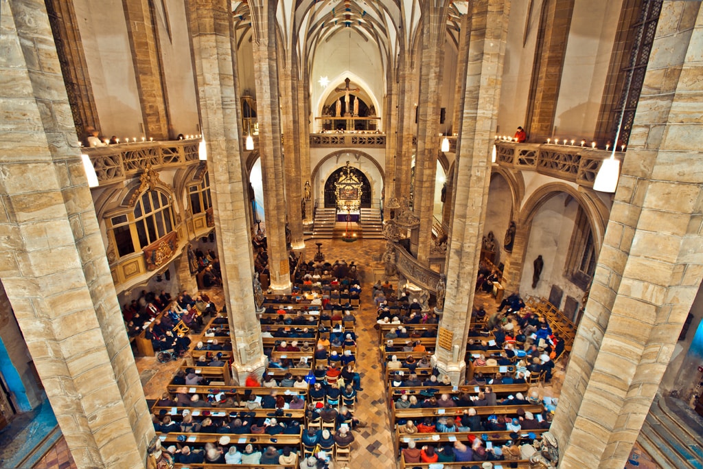Für Musikliebhaber ein Leckerbissen: Von 1710 bis 1714 baute Gottfried Silbermann seine erste große Orgel in den Freiberger Dom, die größte, die er jemals errichtete. Sie hat 44 Register und 2.674 Pfeifen. Die zweite Silbermann-Orgel im Chor blieb kleiner – beide locken ihr Publikum aus der ganzen Welt an.