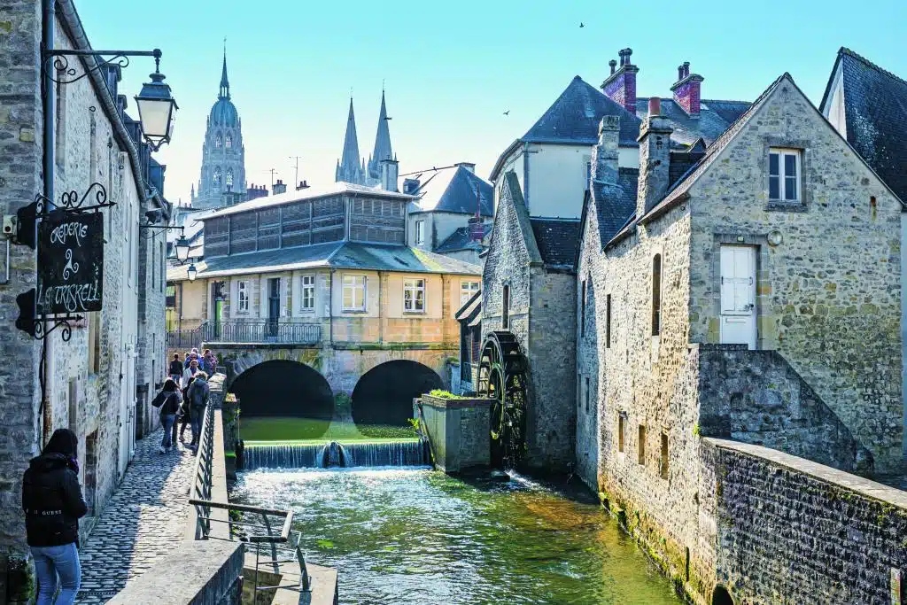 Bayeux, zehn Kilometer landeinwärts, war die erste Stadt Frankreichs, die von den Alliierten befreit wurde und die einzige Stadt der Normandie, die nicht zerstört wurde. Die herrliche Kathedrale und die prächtigen Adelspaläste haben den Krieg weitgehend unbeschädigt überstanden. Der bekannteste Schatz ist der Teppich von Bayeux. Der wertvolle Wandteppich erzählt in 58 Szenen die Eroberung Englands durch den Normannenherzog Wilhelm im 11. Jahrhundert und ist damit der erste Comic Strip der Geschichte.