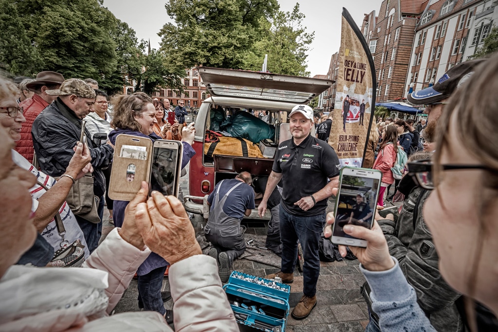 Wenn ein Sportler alle extremen Wettbewerbe gewonnen hat, dann muss er sich etwas Weiterführendes einfallen lassen. Eine außergewöhnliche Idee hatte Joey Kelly, Mitglied der Kelly Family: In seinem VW T1 wollte der 47-Jährige von Berlin aus nach Peking fahren. Auf dem Beifahrersitz: sein Sohn Luke, 19. Um der Tour jedweden Anstrich des Alltäglichen zu nehmen, startete das Team ohne Geld, ohne größere Spritreserven und ohne Proviant an Bord. „Wir wollten uns unterwegs Hilfe bei den Menschen erbitten, die wir treffen“, erklärt Joey Kelly diese Art des Reisens. „Dafür ist jeder, der uns half, namentlich in dem Buch „Bulli Challenge“ erwähnt, das auf dieser Reise entstanden ist.“
