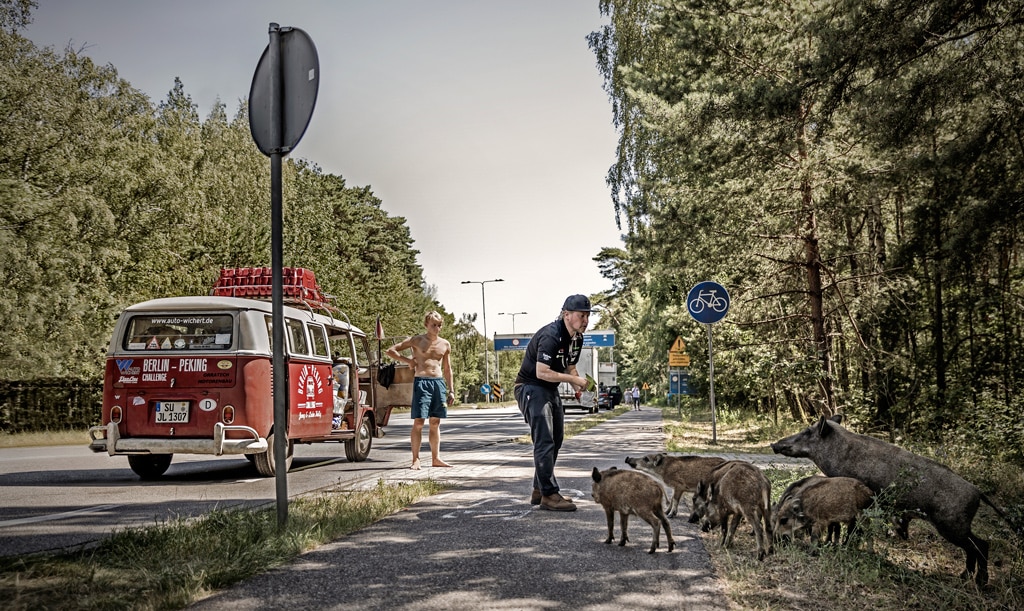 Seinen Sport betreibt Joey Kelly überall auf der Welt, Konzerte führten ihn in alle möglichen Länder – und nun der VW T1 von Berlin bis nach Peking. Die Reiseroute leitete ihn und seinen Sohn Luke über das Baltikum, die Weiten Russlands, Kasachs- tans und der Mongolei bis nach Peking: zehn Länder in 55 Tagen. In Polen, Litauen, Lettland und Estland war es angesichts der Freizügigkeit in der EU leicht, zu reisen. Joey Kelly erinnert sich: „Je weiter wir nach Osten kamen, desto schwieriger wurde es, die Grenzen zu übertreten.“
