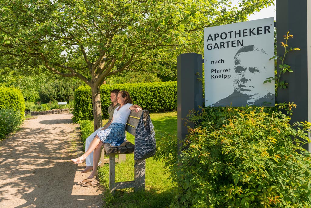 Doch auch ohne solche Feste lassen es sich die Generationen gut gehen: Wasserspiele und Spielgeräte sowie Ruhebänke unter mit Weinlaub berankten Pagoden bieten alle Tage Erholung. Fünf große Basaltsäulen auf dem Platz stehen für die Kneipp‘schen Symbole: Wasser, Pflanzen, Bewegung, Ernährung und Balance.