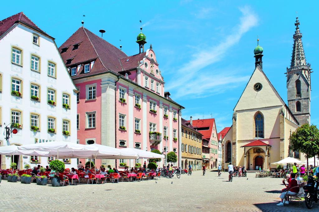 Doch zunächst heißt es, den Dom St. Martin neben dem Brunnen zu besuchen. Im 12. Jahrhundert war das Bauwerk die Liebfrauenkapelle am Markt, seit Ende des 15. Jahrhunderts die Pfarrkirche St. Martin – und seit 1828 Bischofskirche der Diözese Rottenburg-Stuttgart. Der Stadtbrand von 1644 zerstörte das Kirchenschiff, es wurde bis 1655 neu aufgebaut.