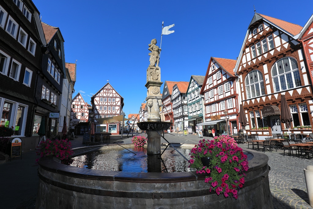 Den Zweiten Weltkrieg überstand die Stadt ohne Zerstörungen. Dies ermöglicht, noch heute die ursprünglichen Strukturen nachzuvollziehen: Sternförmig angelegte Gassen führen von der Stadtmauer direkt zum Herzen der Altstadt, dem historischen Marktplatz mit viel Fachwerk und dem Rolandsbrunnen. Hier treffen sich Menschen, bummeln durch Geschäfte und Boutiquen oder sitzen in einem Café oder Restaurant. Auf dem Marktplatz steht eines der ältesten und interessantesten spätmittelalterlichen Fachwerkhäuser Fritzlars, das zwischen 1475 und 1480 erbaute Gildehaus.