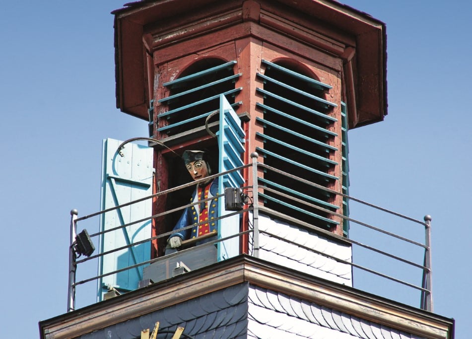 Der Mittelturm krönt das Gebäude. Tipp: Täglich um 12.00 und 18.00 Uhr zeigt sich hier das Melsunger Wahrzeichen – der Bartenwetzer.