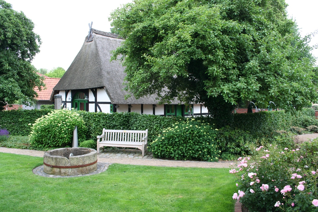 Wer weiter der Bärentatze folgt, gelangt zum Biskuithaus der Familie Facompré. Hier wurden, und da ist sie wieder, die Nienburger Bärentatzen gebacken – eine anderen Spezialität der Stadt als der Spargel. Sehenswert ist auch das Ackerbürgerhaus. Unter dem Dach dieses Fachwerkgebäudes, erbaut 1500, lebten einst Mensch und Vieh zusammen. Eine offene Feuerstelle in der Diele wärmte das ganze Haus. Gute Tradition: Auf dem Schornstein des Hauses in der Langen Straße 48 brüten seit jeher Storchen.