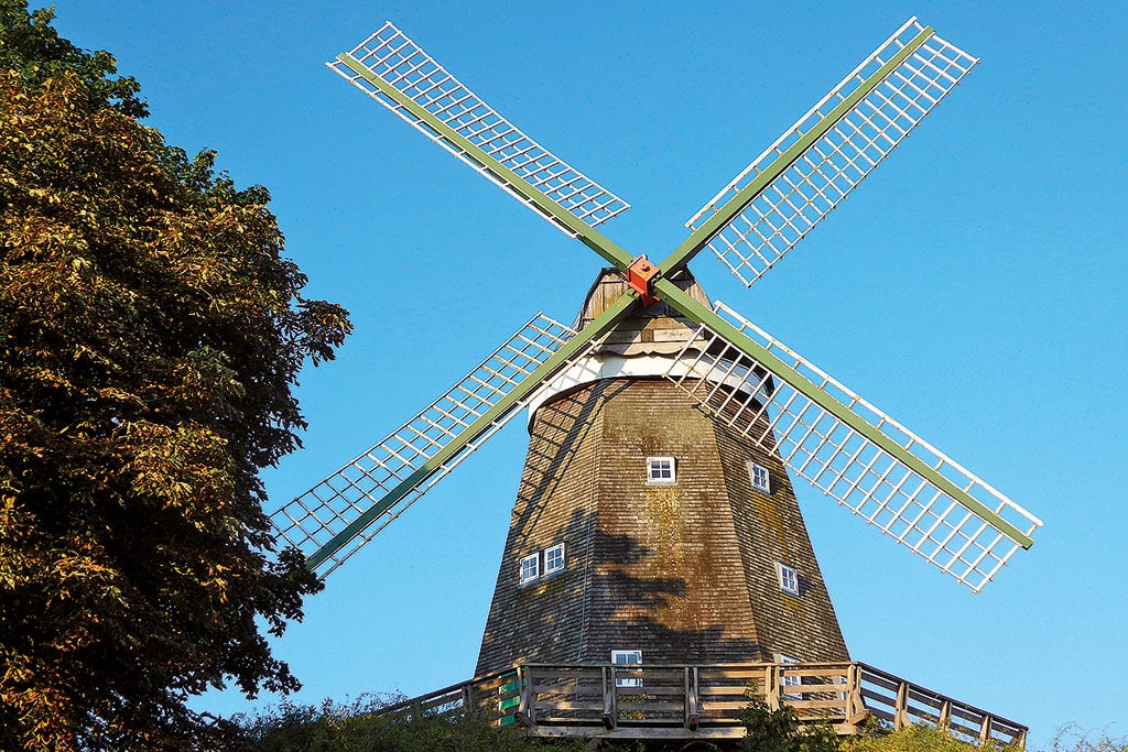 Nach 500 Metern, in Röbel an der Müritz mit seinen gut 5.000 Einwohnern liegt nichts sehr weit auseinander, ist die restaurierte Holländerwindmühle erreicht. Sie erhebt sich als bauliches Schmuckstück mitten im Ort. Bis 1990 hielt sie als Jugendherberge her, nun, nach aufwendiger Restaurierung, reckt sie stolz ihre vier Flügel in den Wind. Tipp: Rund um die Mühle steigen von Mai bis Oktober Konzerte, und Lesungen, Floh- und Kunstmärkte, Modenschauen und Theater.