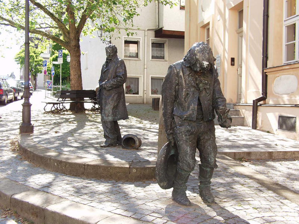 Sogar Statuen zeigen den verlorenen Sohn der Stadt – eine in der Platenstraße, eine zweite am Montgelasplatz in der Nähe von Kaspar Hausers Wohnhaus in der Pfarrstraße 18. Auf dem Friedhof in der Benkendorffstraße 2 erinnert ein Stein auf seinem Grab an das schicksalhafte Leben des bis heute merkwürdigen Mannes: „Hier liegt Kaspar Hauser, ein Rätsel seiner Zeit, unbekannt seine Geburt, geheimnisvoll sein Tod. 1833“, lautet die aus dem Lateinischen übersetzte Inschrift.