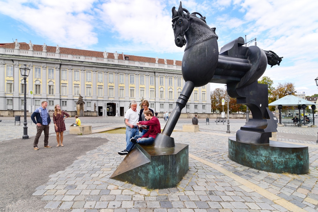 Tipp: In der Uzstraße, gleich um die Ecke, gibt es im seit 1540 bestehenden Restaurant Glöckle Ansbacher Bratwürste mit Sauerkraut für kleines Geld – bei schönem Wetter sogar vor der Tür. Gut gestärkt lässt sich die Residenzstadt gründlich erkunden.