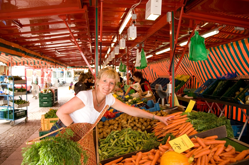 Gerade mal 50 Meter weiter lädt das Miraculum ein, das Mach-mit- Museum im Gebäude des Historischen Museums. Seit 2001 inszeniert das Haus jedes Jahr ein neues Ausstellungsthema so, dass die kleinen und großen Besucher miteinander und mit jeder Menge Spaß auf Entdeckungsreise gehen, Exponate anfassen, ausprobieren und dabei eigene Erfahrungen machen. So wie in der Markthalle am Marktplatz, 300 Meter weiter – nur dass hier Dinge, die verkauft werden, im Mittelpunkt des Interesses stehen.