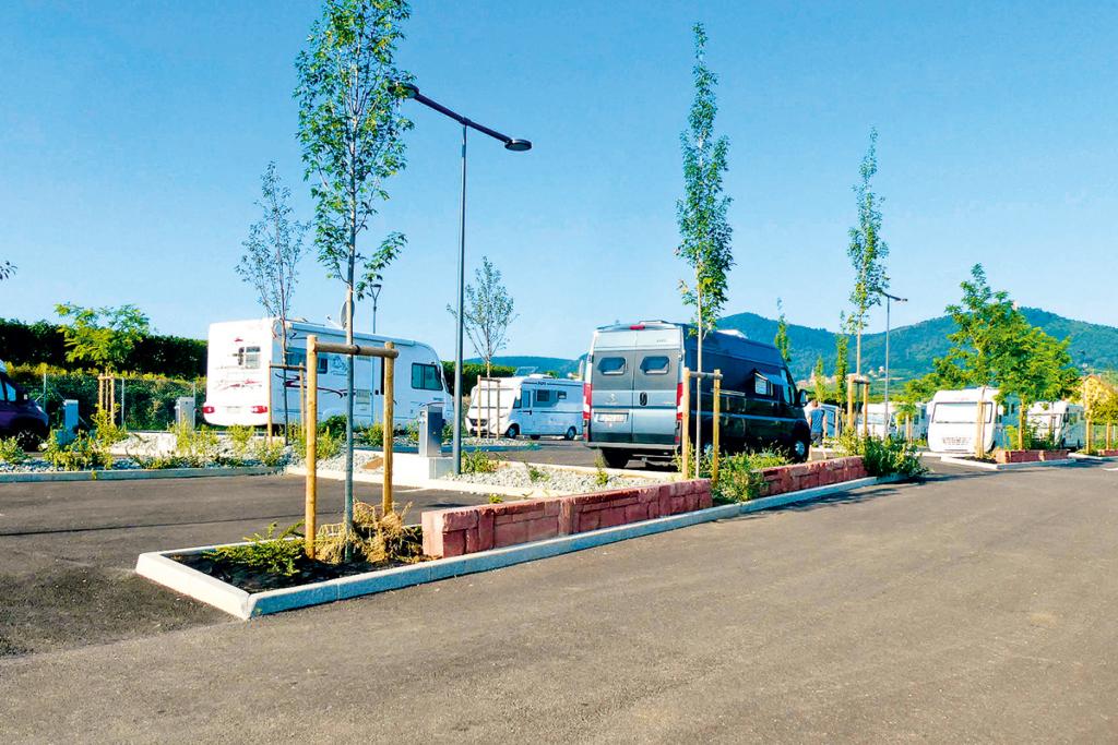 Aire de Camping-car d’Eguisheim, 21 Grand Rue, Tel.: 0033/3/89234033, www.tourisme-eguisheim-rouffach.com, 48°2‘28.92“N/7°18‘35.34“E. Am öffentlichen Parkplatz beim Rathaus, 0,2 km vom Ortszentrum entfernt. 33 Stellplätze auf Asphalt. Strom, Wasser, WC, Entsorgung (Chem/Grau), Hunde erlaubt. Aufenthalt max. 3 Tage. Untergrund leicht schräg. Ganzjährig geöffnet. Ausnahme: Bei Veranstaltungen gesperrt. 20 € inkl. Strom, Entsorgung, WLAN. Wasser 3 €, VE für Durchreisende 3 €. Bezahlung mit Bankkarte. Alle Details hier.