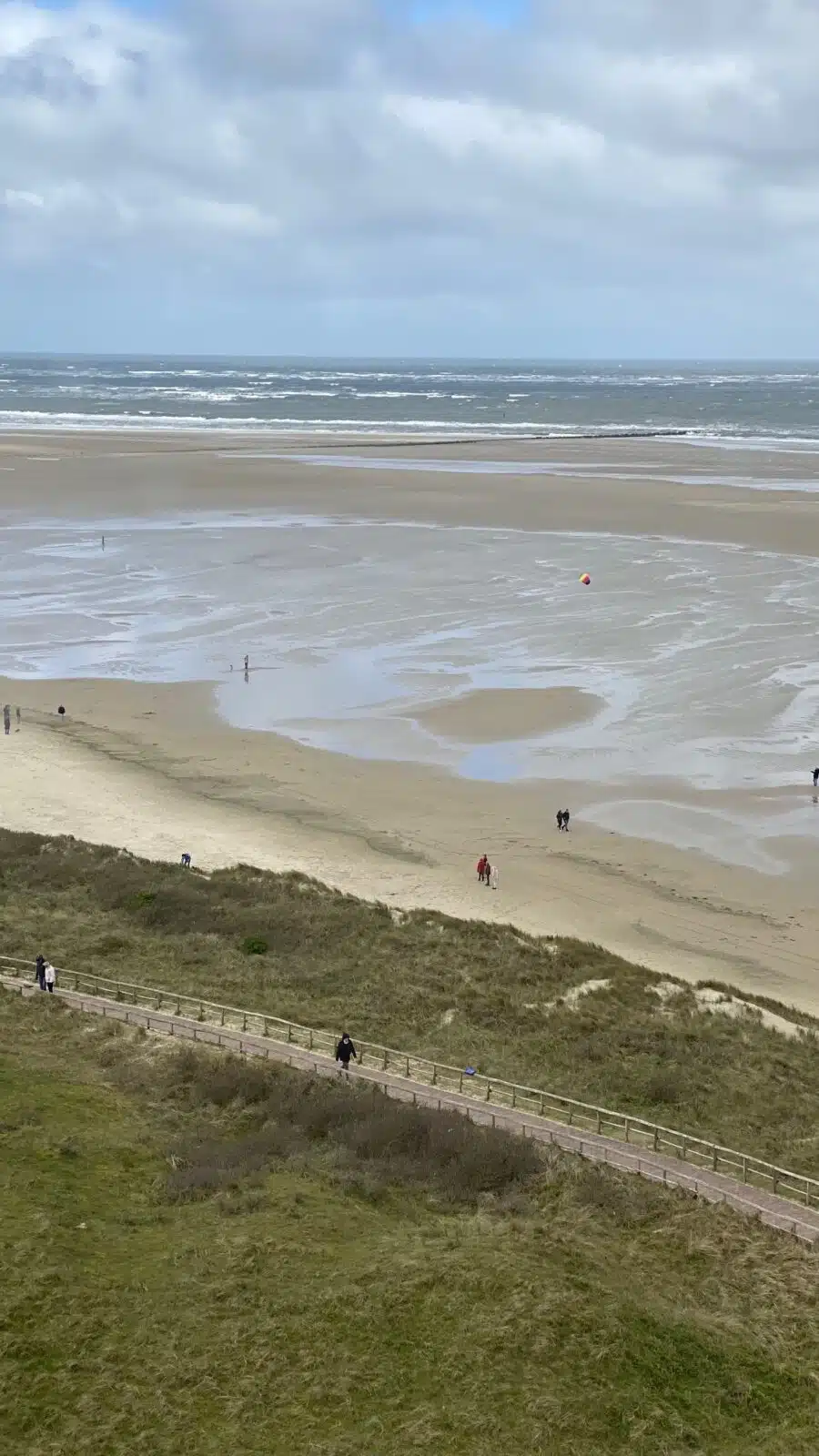 In 45 Metern Höhe überblickt man den breiten Sandstrand, der den Dünengürtel von der offenen Nordsee trennt. Man kann gut 50 Kilometer in Richtung Norden bis nach Vlieland sehen. Die westfriesische Nachbarinsel wirkt dabei so nahe, als ob man hinüberschwimmen könnte. Besser nicht. Die Strömung wäre zu stark und man käme den großen Containerschiffen in die Quere, die ihre gut gefüllten Bäuche vorbeischieben.