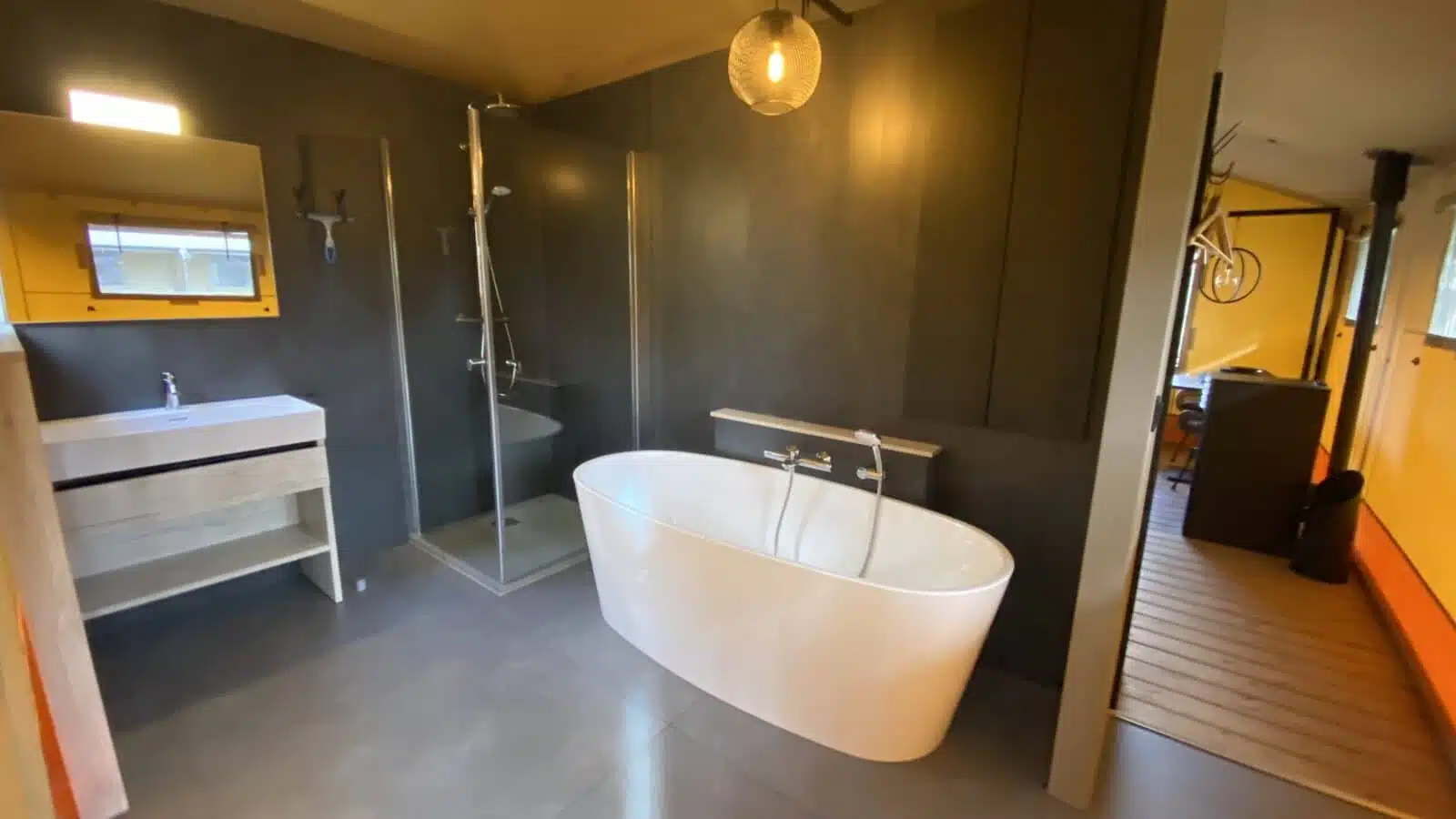 Über einen sternförmig angelegten Bereich für Wohnmobile gelangen wir zu den dahinter liegenden luxuriös ausgestatteten Lodges, einer Mischung aus Haus und Zelt zum Mieten. Ricardo de Graaf leitet den Familienbetrieb und zeigt uns wie Cam- ping auf ein neues Level gehoben wird mit Veranda, Regendusche, Himmelbett und freistehender Badewanne, von der aus man direkt den Wald und die Vögel sieht. Hier kann man es aushalten. Doch es gibt noch so viel zu entdecken auf der Insel.